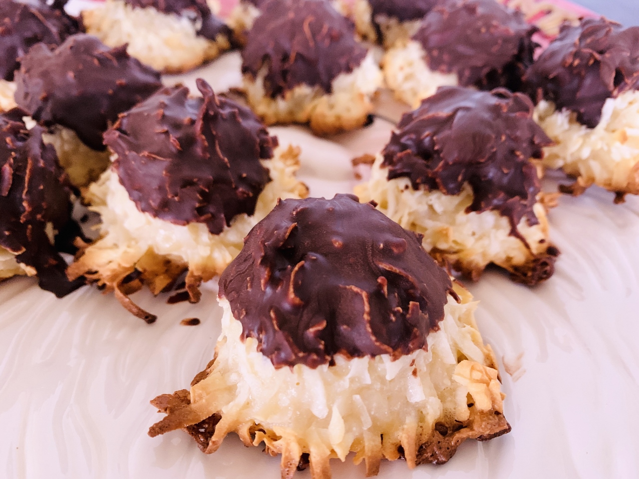 Macaroons are a holiday cookie that my family can’t live without because these coco-nutty cookies are something to treasure. What’s fascinating about these cookies is that you only need a handful of ingredients to make them, and yet they taste so darn good. The size and scale of these cookies can vary greatly, but most macaroons start with two simple things – mounds of coconut and whipped egg whites.