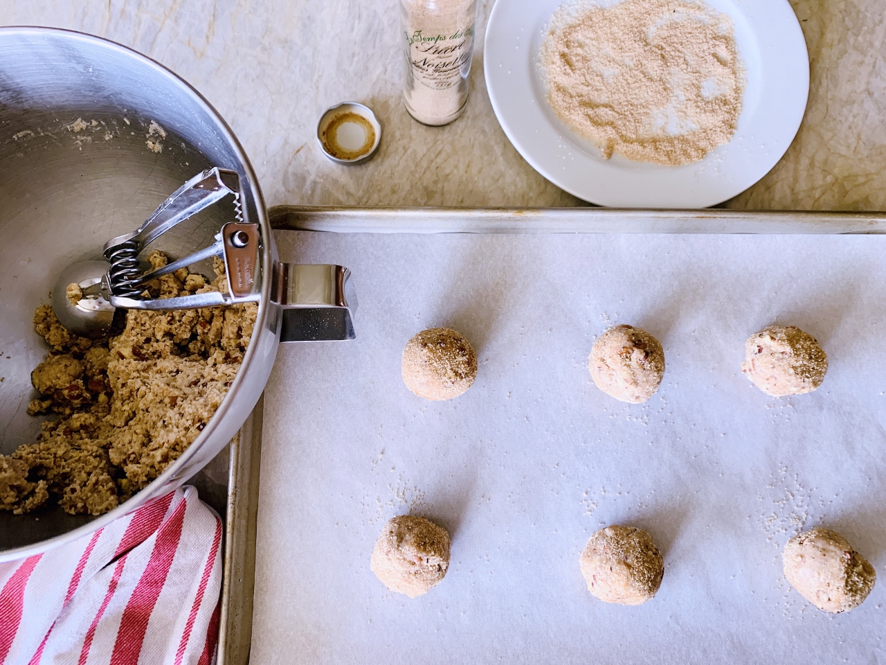 I made these babies big intentionally, similar size to a ping-pong ball before baking. I think the huskiness allows for a better tasting cookie. Sort of like a mini-muffin versus a regular sized muffin. Which would you rather bite into? I say the latter because there’s something about the sensation of it all.