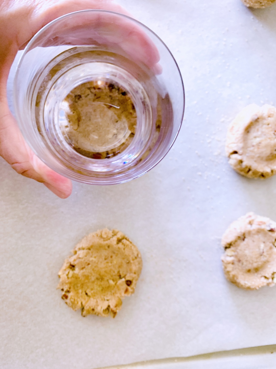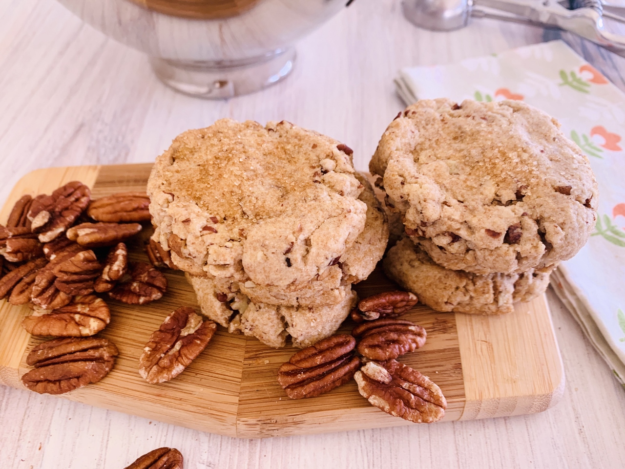 When I bake, I usually go big and these chunky Pecan Sandies are truly a mouthful. Most of us around the holidays make some sort of dainty pecan cookie, but these aren’t the kind of treat you put out on a holiday buffet table. These cookies are large and crunchy with a slight chew in the middle, a cookie that you can eat straight from the baking tray or pull out of the cookie jar, and feel the crumbs stick to your chin after just one bite. My kind of cookie.
