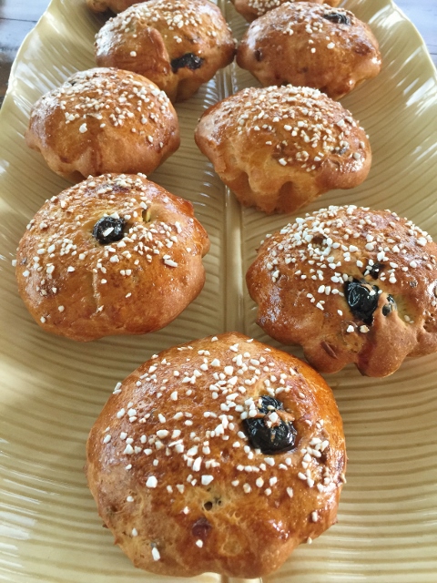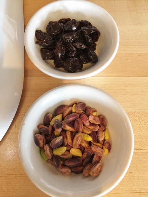 The cakey pastry is lightly buttery and swirled with toasted pistachios, a hint of orange peel and dried sour cherries. When you take a bite your mouth goes into overdrive because of all the delightful flavors twirling around inside. The textures are magnificent, not to mention the taste. This pastry isn’t over sweet, but a nice combination – great with a cup of coffee or tea.