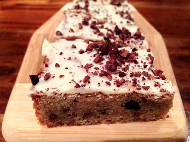 12. Sprinkle the last 1/4 cup of cocoa nibs over the top the blondies and let cool to room temperature for 45 minutes.