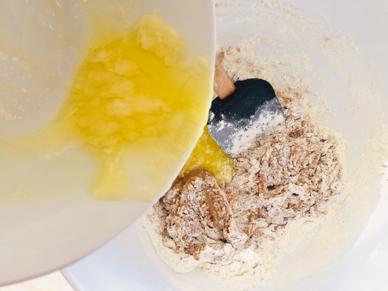 - Add flour, baking powder, baking soda and salt, stir for 1 minute.