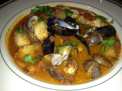 For entrees, they have several fresh fish varieties with a choice of sides including fries, coleslaw, potato salad, wilted spinach and onion rings. Other Chef Specialities included Lobsters by the Pound, Steamers, Bone in Rib Eye Steak and New England Boiled Dinner. The Portugese Stew had my interest and I must say the sauce with fresh Linquica, big chunks of Hake, fresh Mussels and Clams was absolutely amazing. The spice in the sauce was done perfectly making Cioppino seem trivial.