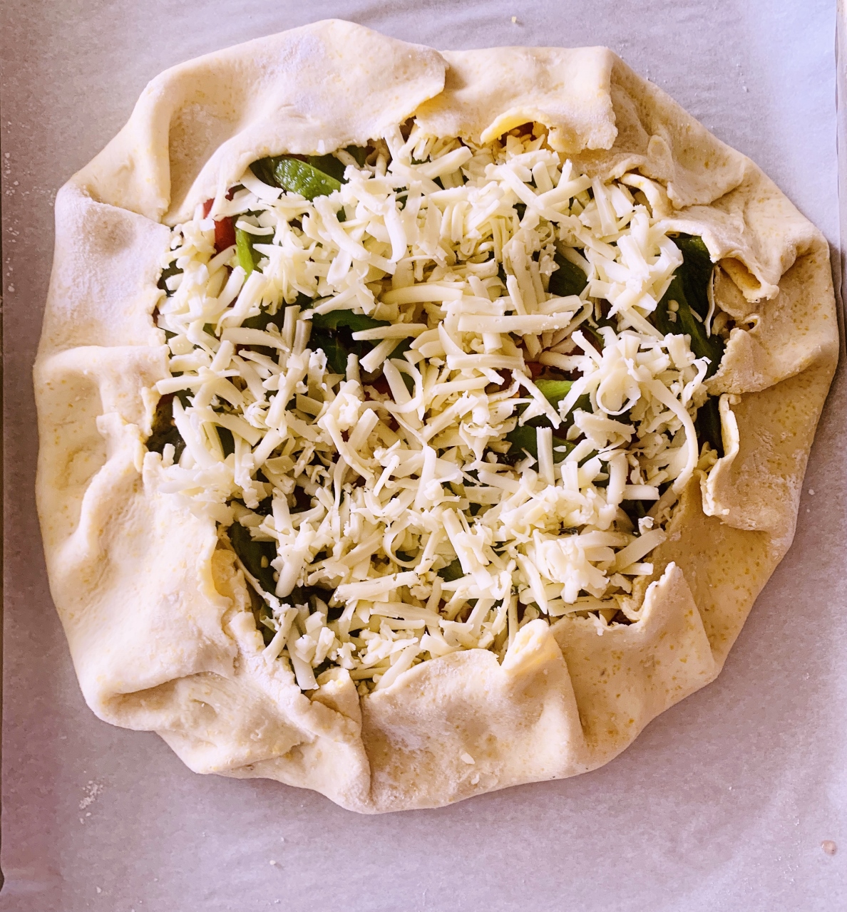 The crust is made with flour and a bit of cornmeal, for added chew, and to highlight its Southwestern flair. The cheese binds the whole thing together in subluminal bliss, but brings you conscientiously to a place of pure happiness. I think this tart is a meal in itself, but you can slice it as an appetizer before a lighter dinner. Check out my Reel on Instagram if you have any questions about how to put this tart together. @genabellrecipes.