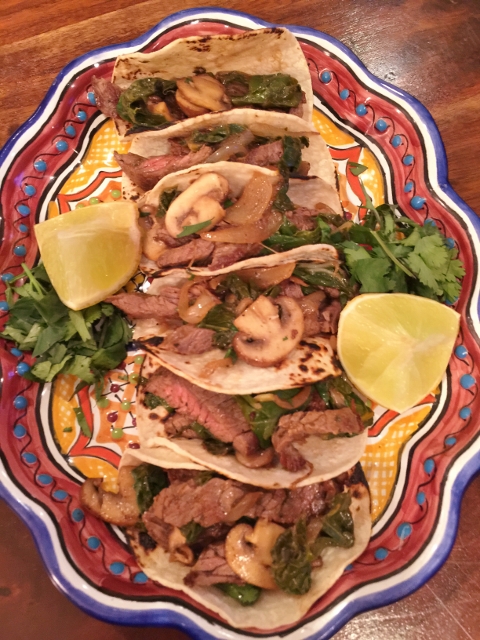 Carne Asada, Mushroom & Swiss Chard Tacos – Recipe!