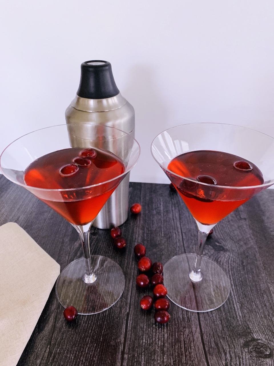 - Shake, shake, shake until cold and combined. Place a couple of fresh cranberries into martini glasses. Strain Negroni over the top into glasses. Enjoy!