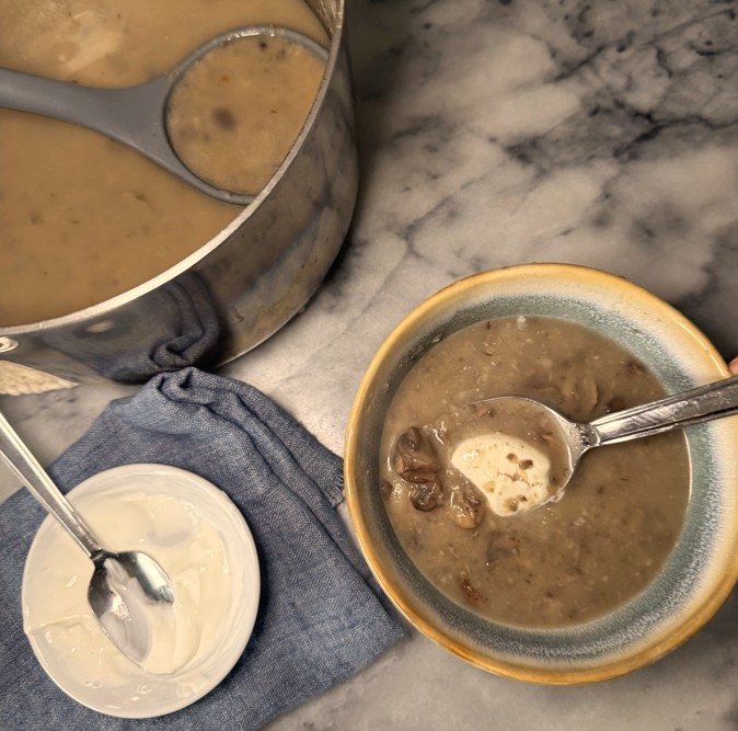 This Creamy Mushroom and White Bean Soup is so easy — it will be done before the table is set!