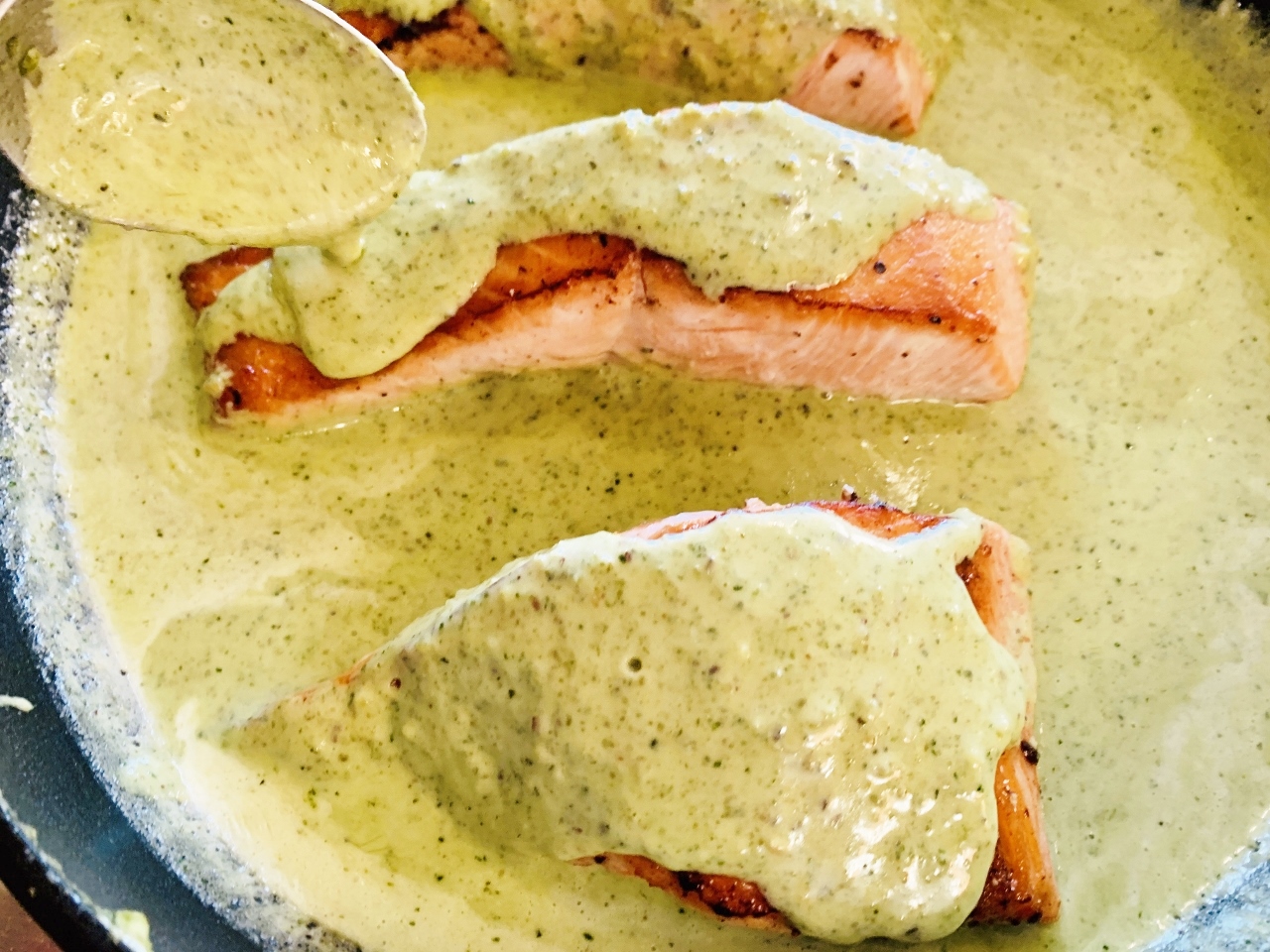 4-Ingredient Creamy Pesto Salmon – Recipe!