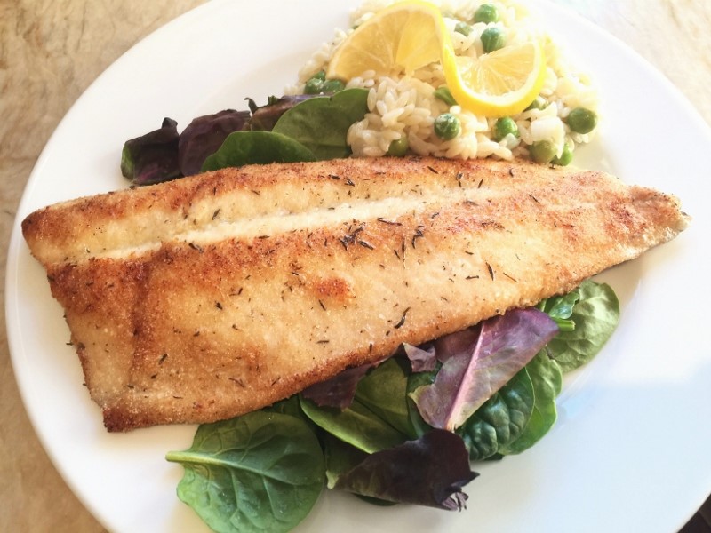 Sprinkling trout with a dusting of semolina, cornmeal or flour is a necessity for an superb crust and a little squeeze of lemon to finish the fish is all you need for a citrusy taste. Spring orzo is a simple preparation of pasta, with fresh peas, lemon and parmesan. It only take 8-minutes for an extraordinary side dish and boy, does it pair nicely with trout. Also, I like to pile a little mixed greens under the trout before plating, because you can never have enough fresh greens during springtime.