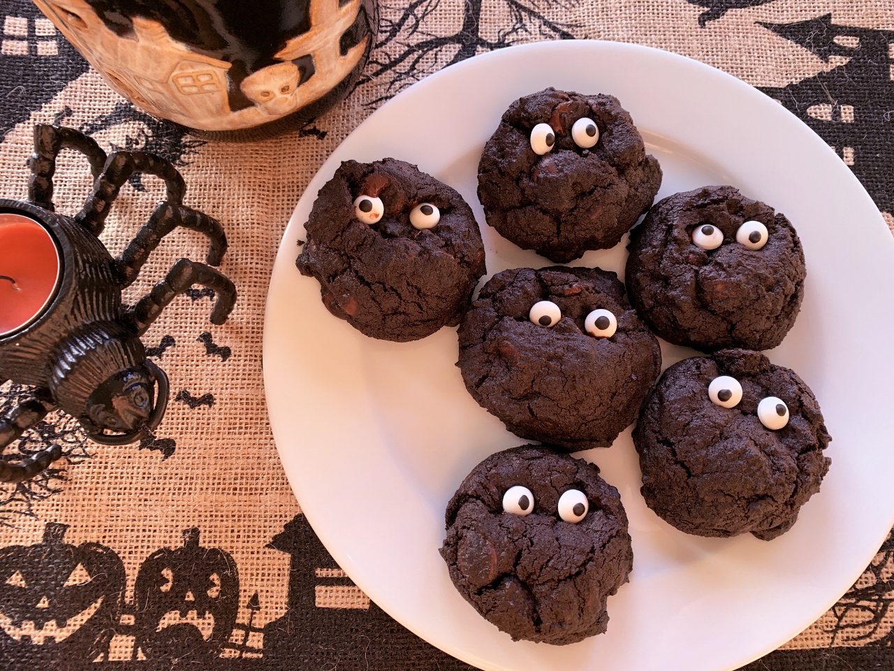 Double Chocolate Cookies are creepy enough to share with ghouls big or small.  So, bake up a batch before the wolves howl and the moon is high, and you hear the rat-a-tap-tap on your door.