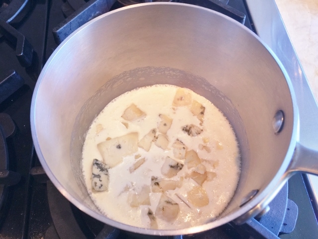 1. Crumble Gorgonzola into pieces.  In a small saucepan , heat heavy cream until simmering, about 2 minutes, then add Gorgonzola and whisk until smooth.  Remove cream from heat and pour into a bowl. Place bowl in refrigerator to chill for at least 1 hour – cream will thicken as it cools.