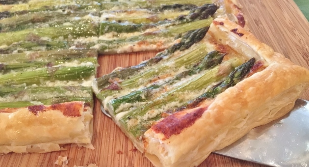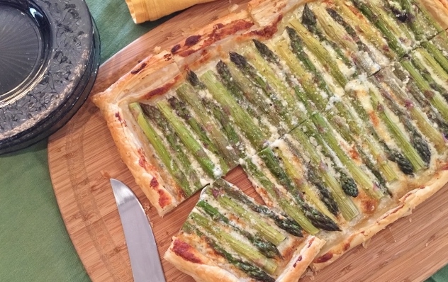 Spring offers so much fresh produce and I am always looking for new ingredients for baking. I like to use store-bought puff pastry for a quick canvas to create flavorful springtime treats. Asparagus is one of this season’s treasures and it is available now, all the way through summer and makes a great veggies to add on top of a tart.