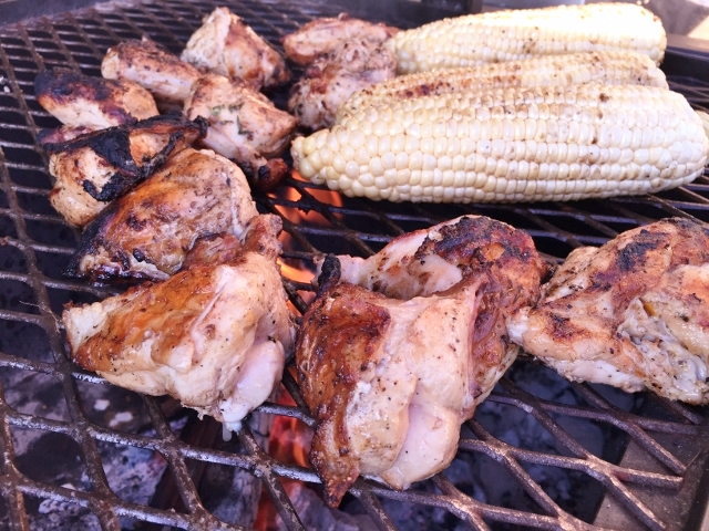 5.  Remove the chicken from the marinade and pat dry with paper towels.  Preheat a gas grill to medium-high or a charcoal grill, leaving 1/3 of the grill with no heat.  Place the chicken on the grill to cook for 12 to 15 minutes a side, moving it to the indirect heat as necessary to prevent burning and to finish cooking. You can add any fresh vegetables to cook along with the chicken and I love sweet corn in the summertime.  Enjoy!