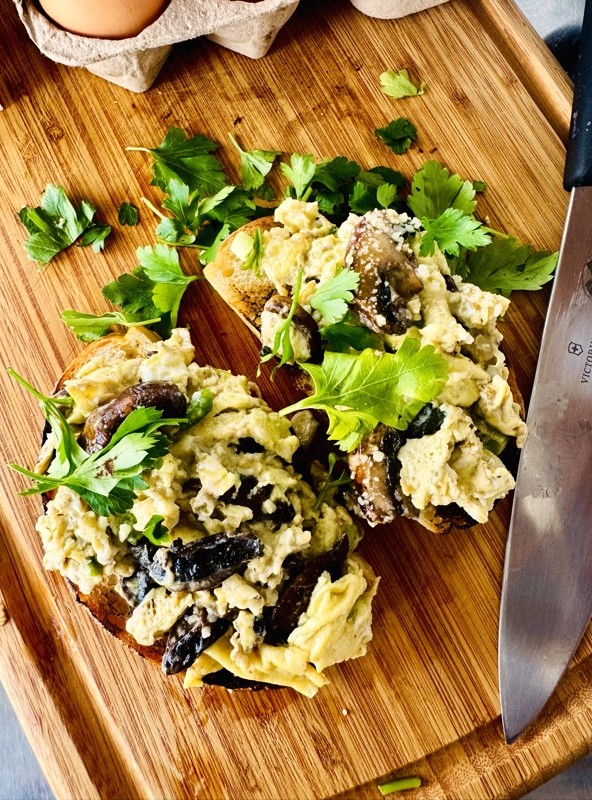 I like to serve these Easy Scrambled Egg and Mushroom Toasts for holidays, brunch on the weekends, or a school day — when you wake up a bit early and want a delightful meal before heading out.