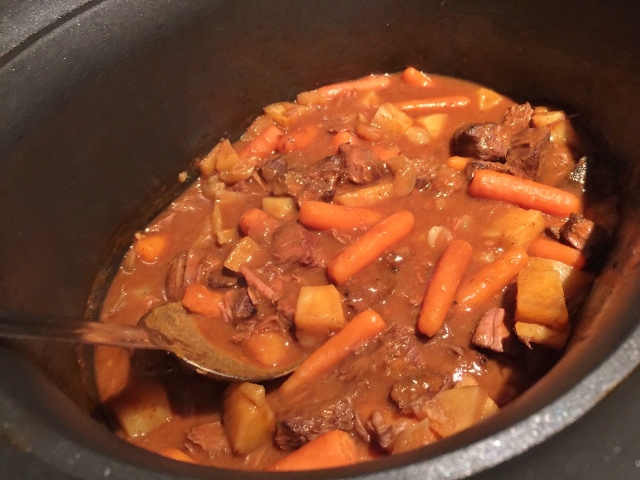 4. After 2 hours, add carrots and potatoes to slow cooker, stir to combine. Continue cooking for 6 more hours. If you can’t add vegetables, after 2 hours, add them at beginning of the cooking cycle, they will be a little softer. Remove lid and stir. Ladle stew into bowls and Enjoy!