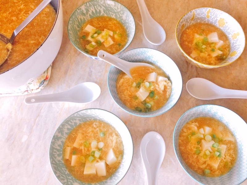 When I was a kid, my mom would go and get Chinese take-out from a local restaurant in Anaheim when we were feeling under the weather. Some of the dishes I remember enjoying the most were Egg Foo Young, Moo Shu Pork, and my favorite – Egg Drop Soup.