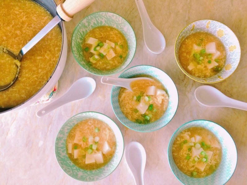 When I was a kid, my mom would go and get Chinese take-out from a local restaurant in Anaheim when we were feeling under the weather. Some of the dishes I remember enjoying the most were Egg Foo Young, Moo Shu Pork, and my favorite – Egg Drop Soup.
