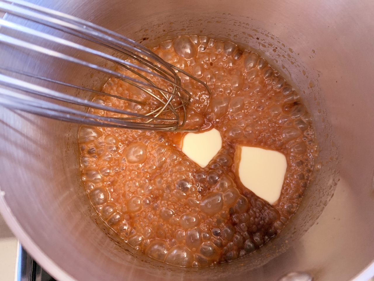 - Remove from heat and add cream, whisk until mixture becomes smooth. Add butter, vanilla, salt and more rum, whisk again until creamy. Serve sauce with pudding. Enjoy!