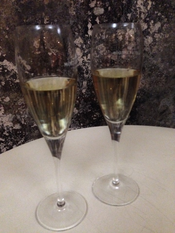 Our amuse bouche of Cauliflower Soup with Crouton was delightful. The creaminess of the soup was nice with a glass of champagne – great beginning.