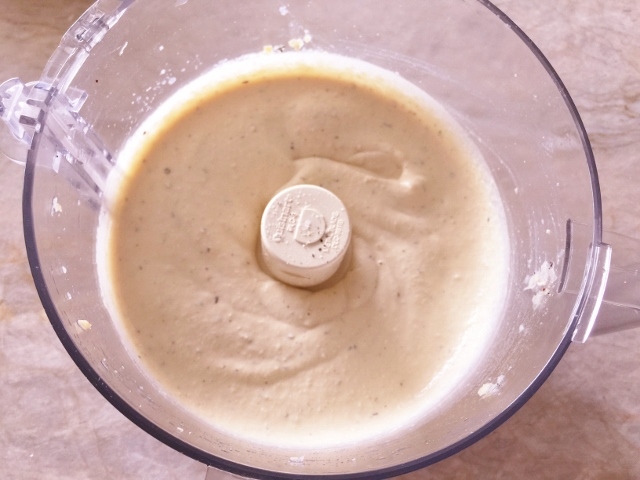 3. In a food processor, add chickpeas, thyme, garlic, 1 teaspoon salt and 1/2 teaspoon black pepper.  Puree and drizzle in olive oil through feed tube until creamy.  Remove and store in an airtight container in refrigerator until ready to assemble.
