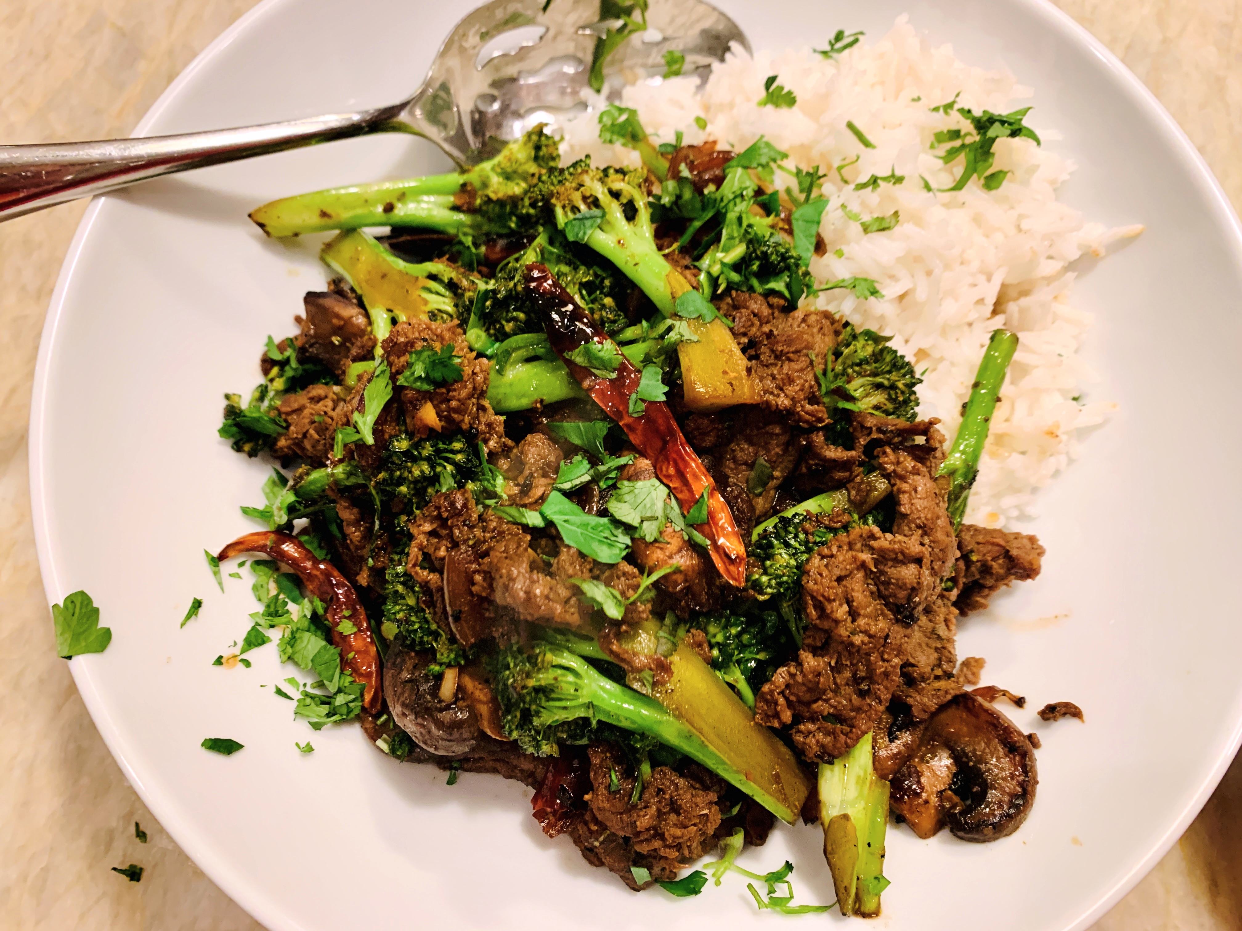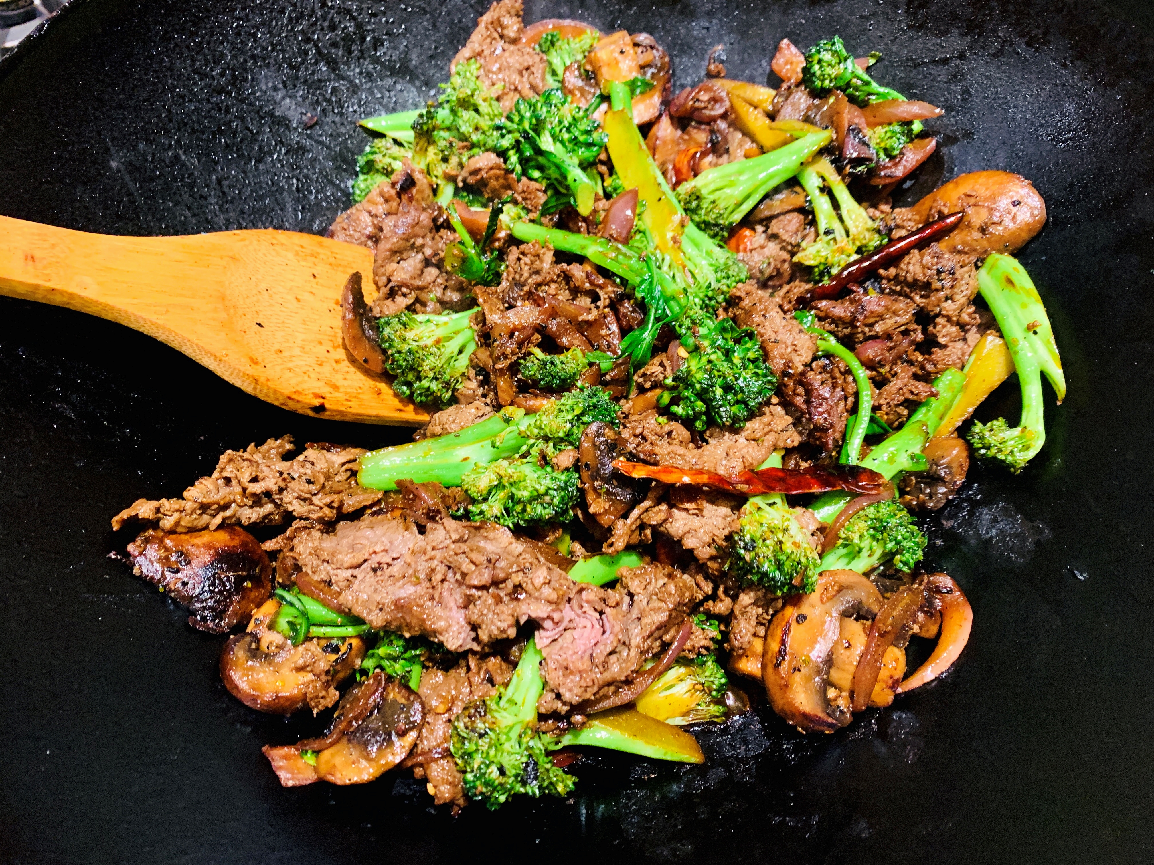 Arbol chilies are dried and sold in bags in most grocery stores and can be your favorite new addition to almost any meal. These little deep red chilies offer just the right amount of heat and peppery flavor to highlight a stir-fry. A splash of chili oil also can add to the experience, but if you’re not a spicy food lover like me, you can adjust it down to complement your palate. The broccoli and mushrooms are two vegetables (technically a vegetable and a fungi) that accentuate the beefy flavors in a stir-fry, while offering tons of healthy benefits. It’s a good way to sneak some good-for-you food into those who sometimes turn up their noses at such a combination. The marinated seared meat and fiery chilies can sometimes conceal vegetables, so that they can be more enjoyable and eaten much more often. For me, I love this meal and could eat it once a week by changing out the protein and vegetables in various combinations. I think this wok full of fun is a definite mealtime treat, and will be truly note worthy when created by you at home.