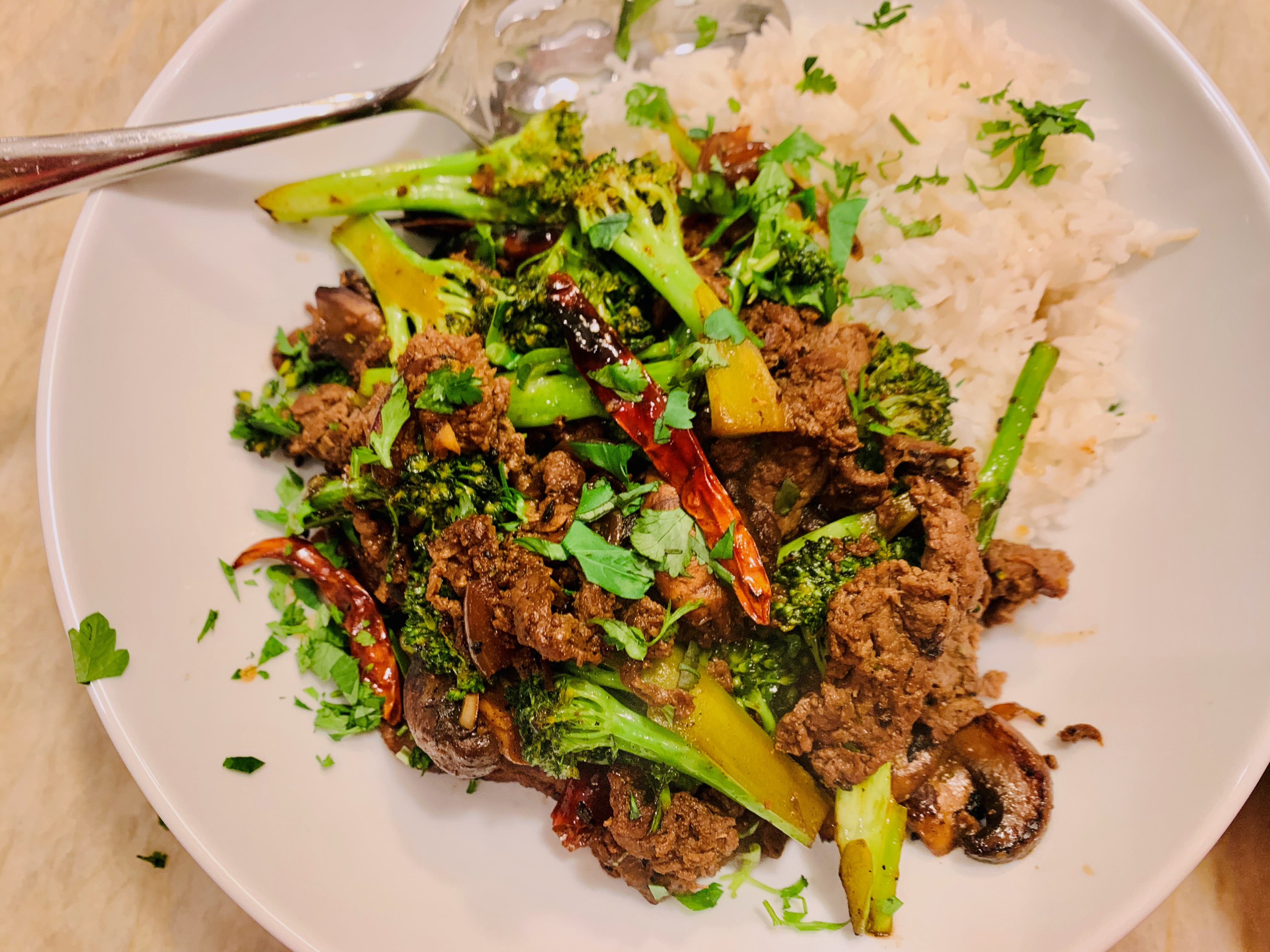 Arbol chilies are dried and sold in bags in most grocery stores and can be your favorite new addition to almost any meal. These little deep red chilies offer just the right amount of heat and peppery flavor to highlight a stir-fry. A splash of chili oil also can add to the experience, but if you’re not a spicy food lover like me, you can adjust it down to complement your palate. The broccoli and mushrooms are two vegetables (technically a vegetable and a fungi) that accentuate the beefy flavors in a stir-fry, while offering tons of healthy benefits. It’s a good way to sneak some good-for-you food into those who sometimes turn up their noses at such a combination. The marinated seared meat and fiery chilies can sometimes conceal vegetables, so that they can be more enjoyable and eaten much more often. For me, I love this meal and could eat it once a week by changing out the protein and vegetables in various combinations. I think this wok full of fun is a definite mealtime treat, and will be truly note worthy when created by you at home.
