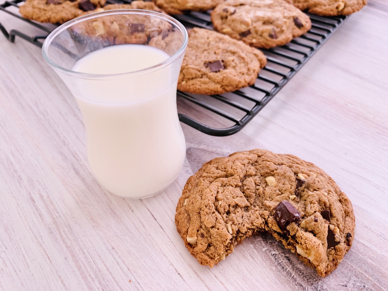 Another plus about this recipe, is that it’s as simple as mixing everything in one bowl, and scooping it into balls before baking. The cookies are delicate, yet slightly crispy after cooling. I love the combination of almond butter with chocolate chips and peanuts, and you can always add chopped almonds instead, if peanuts are not part of your diet.