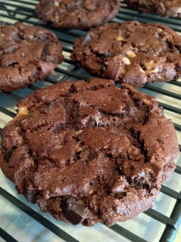 The creamy peanut butter, along with the rich dark cocoa powder and chocolate chunks are already perfection, but I didn’t stop there.  I added a few toffee bits for a caramel sensation that knocks them out of the park.