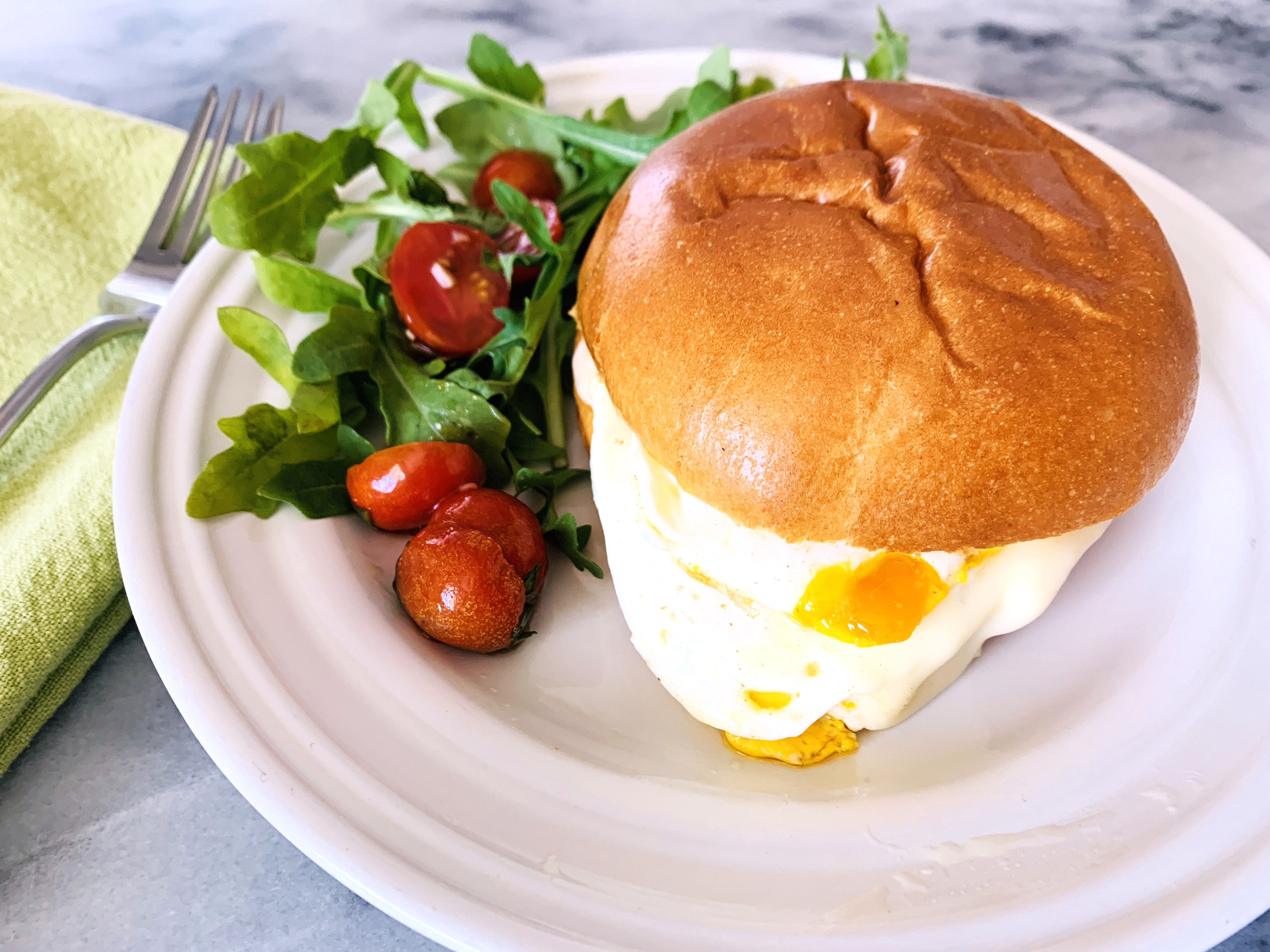 Fried Duck Egg Breakfast Sandwich on Brioche Bun – Recipe!