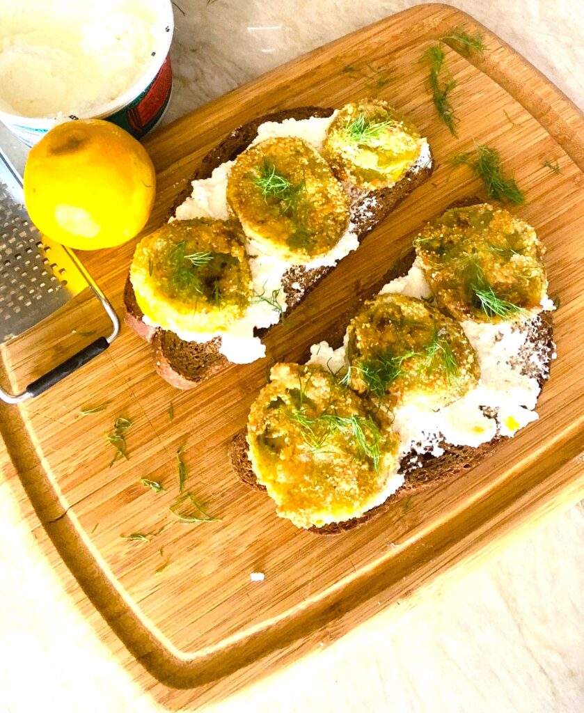 Fried Green Tomato Lemon Ricotta Toasts – Recipe!