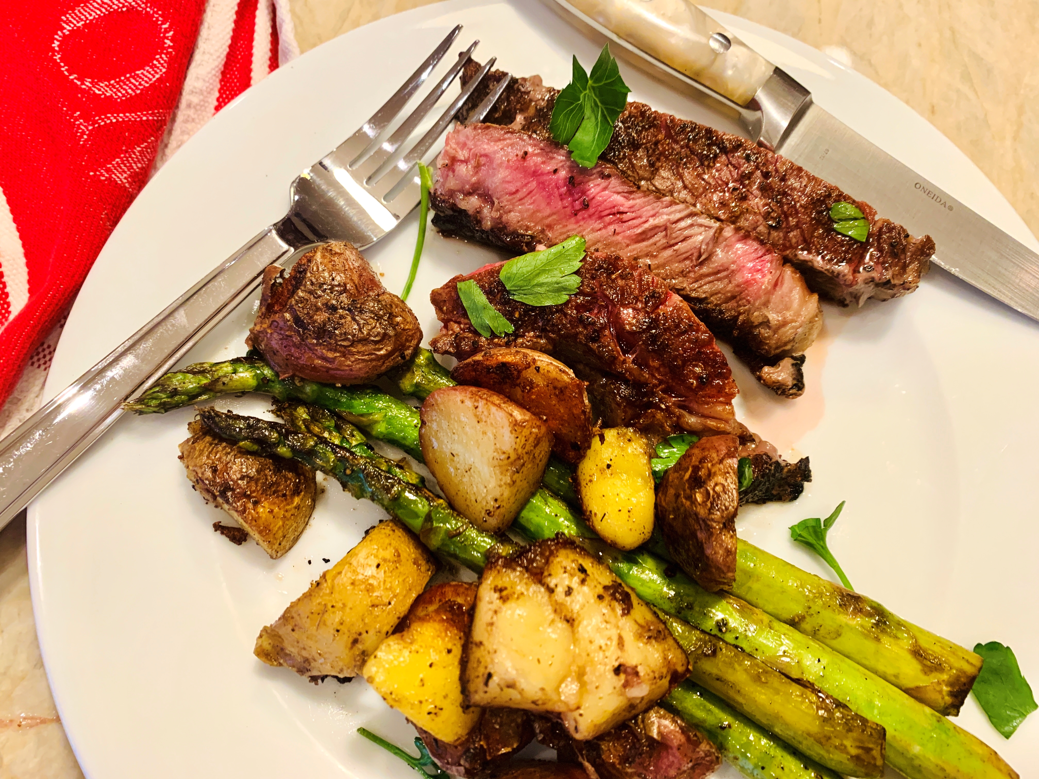 Garlic Butter Rib Eye with Asparagus and New Potatoes – Recipe!