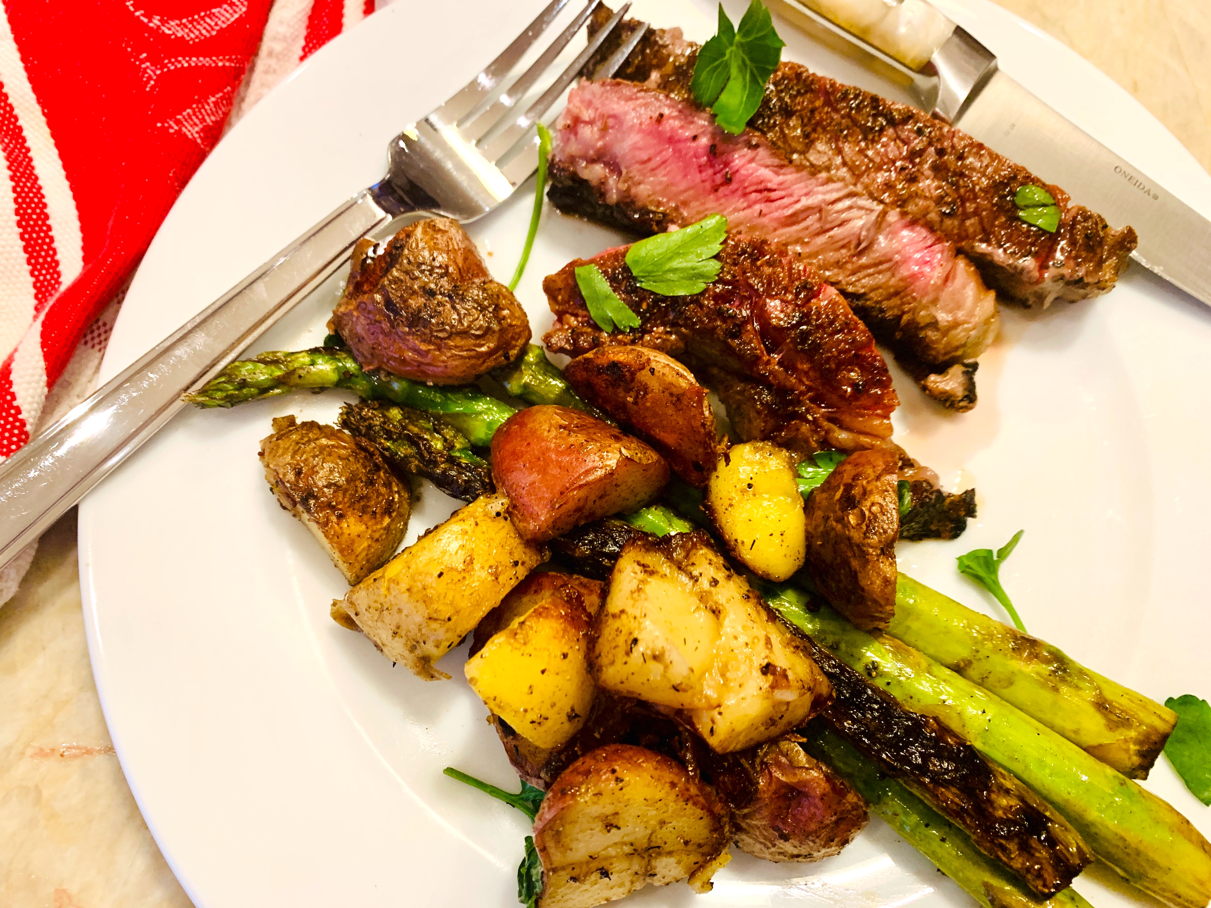 Garlic Butter Rib Eye with Asparagus and New Potatoes – Recipe!