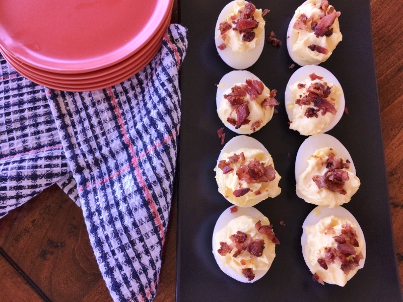 Deviled eggs always remind me of springtime and these Deviled Eggs with Goat Cheese and Bacon are a true delight. In my family, deviled eggs are mostly made with mayonnaise, yellow mustard and a dash of paprika on top, however this reicpe expands that profile into another tasty realm.