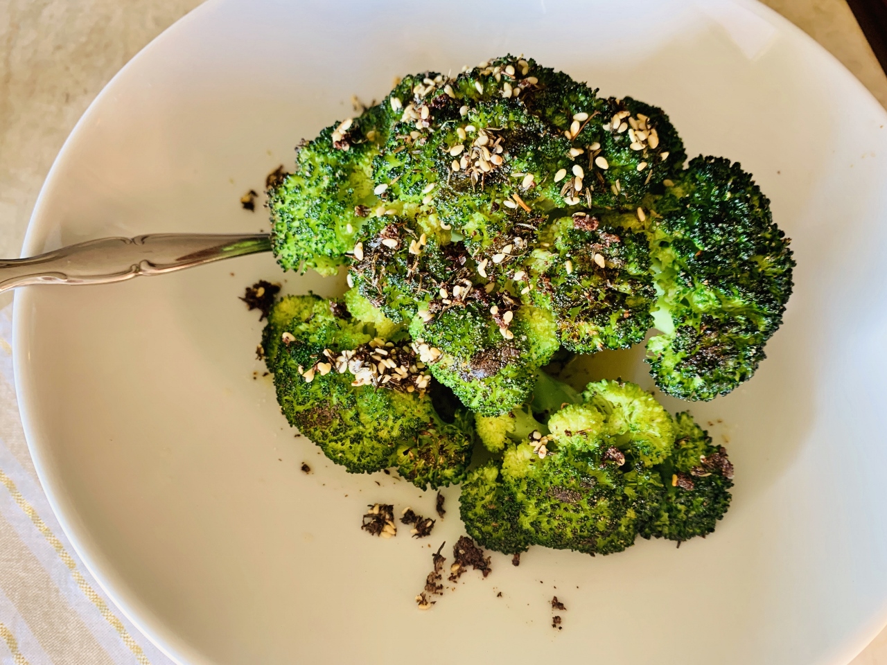 As far as a topping, if you haven’t tried a spice mix called Za’atar, you don’t know what you are missing.  It’s a North African herb combination made with sesame seeds, sumac, dried thyme and a few other things that you can add to warm olive oil for a fragrant drizzle over the grilled broccoli.  You can find Zahtar at most grocery stores and definitely online.  It’s also great sprinkled over grilled fish or chicken, and any other grilled vegetables you may have added to the fun.