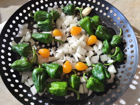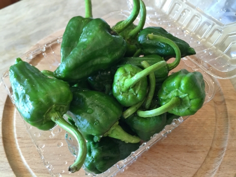 Padron peppers are originally from northwestern Spain, but you see them popping up in local farmer’s markets and at specialty grocers here in the states. These peppers have a bit of heat without tasting too spicy and the sweet and savory combination, is a perfect pairing with meat.