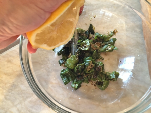 7. Then, squeeze the lemon juice over the top of the peppers and herbs and stir to combine the flavors.