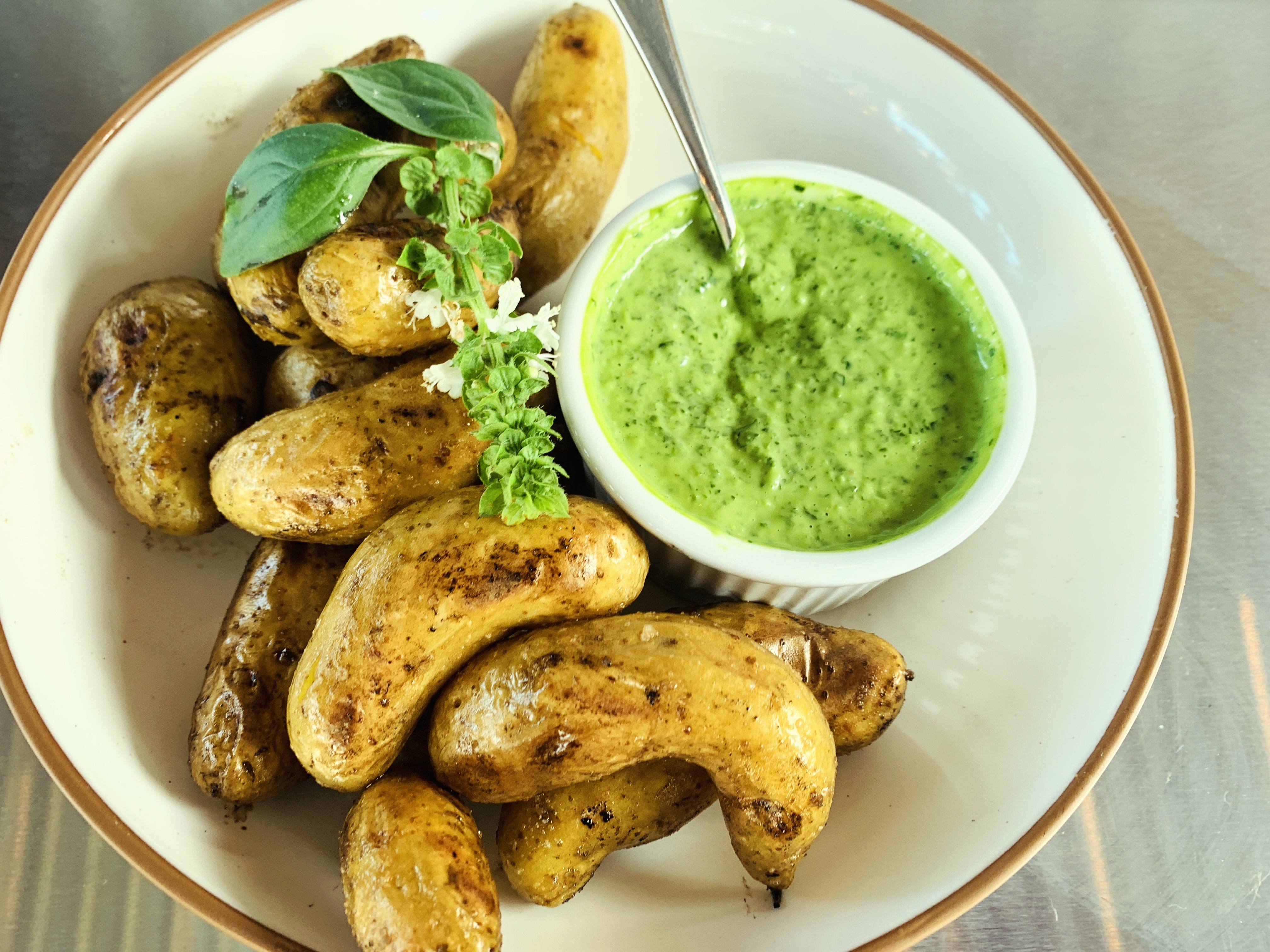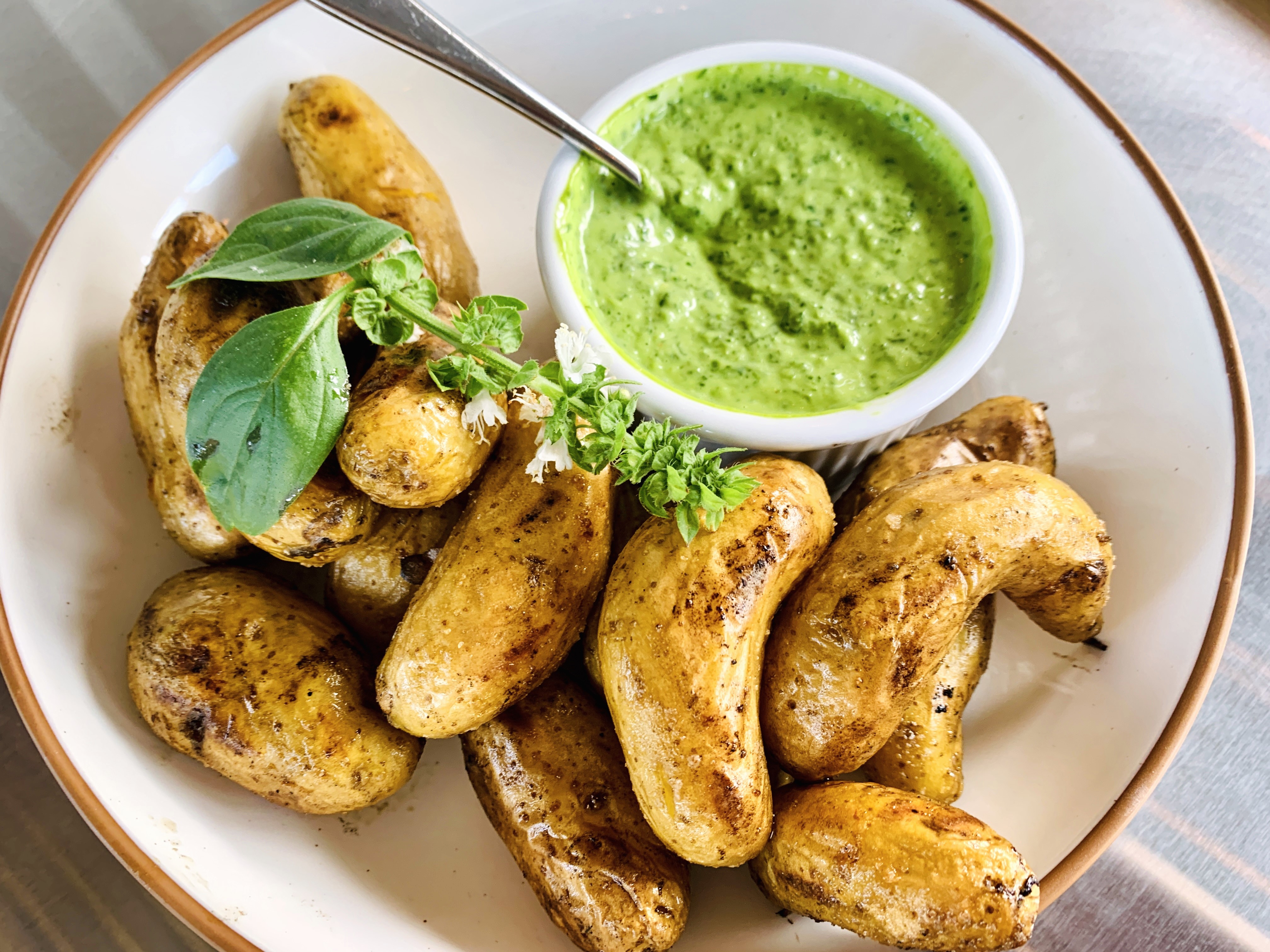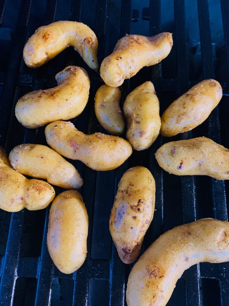 Fingerling potatoes are already naturally creamy, and when you cook them on an outdoor grill, or on the stove top in a grill pan, they become slightly charred, while still maintaining their structure and a velvety interior. These little golden gems make the best side dish because they partner with so many other foods.
