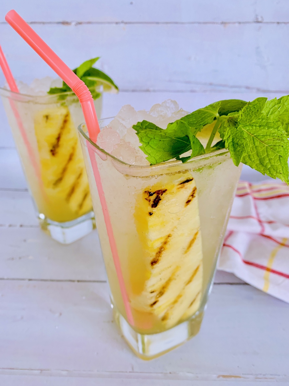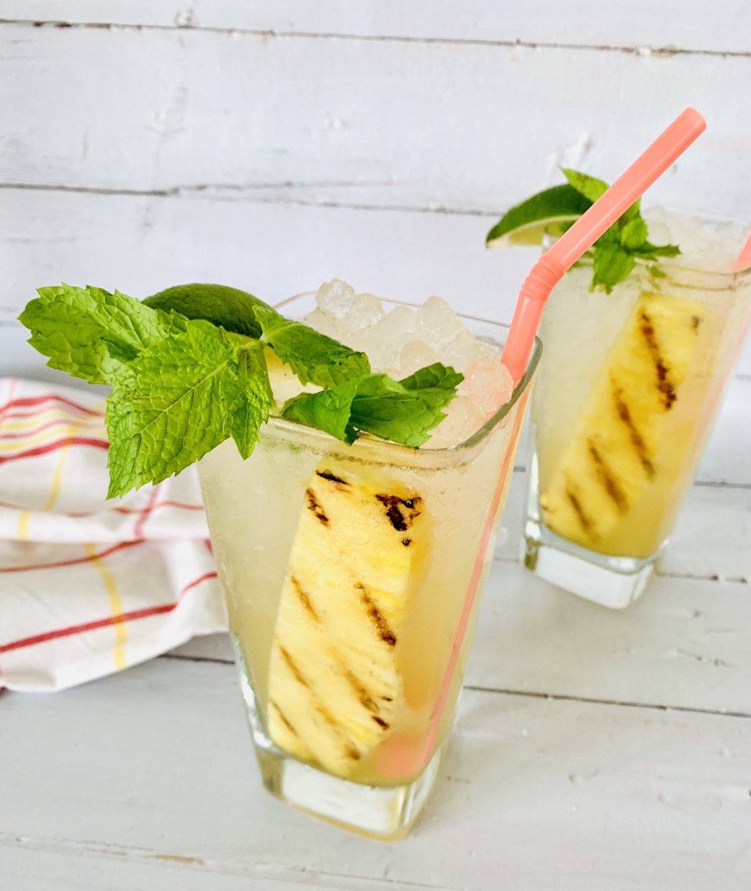 Mojitos are a great cocktail, but even more delightful during the summer months when the weather is warm and you are craving a chilled drink. These specialty cocktails are usually served in tall icy glasses and filled with seasonal fruity flavors that are muddled together with ease. Since it’s pineapple season, I thought a cocktail with this tropical fruit would hit the spot, and grilling it ahead of time, would add a slight subtle smokiness that changes the game completely.