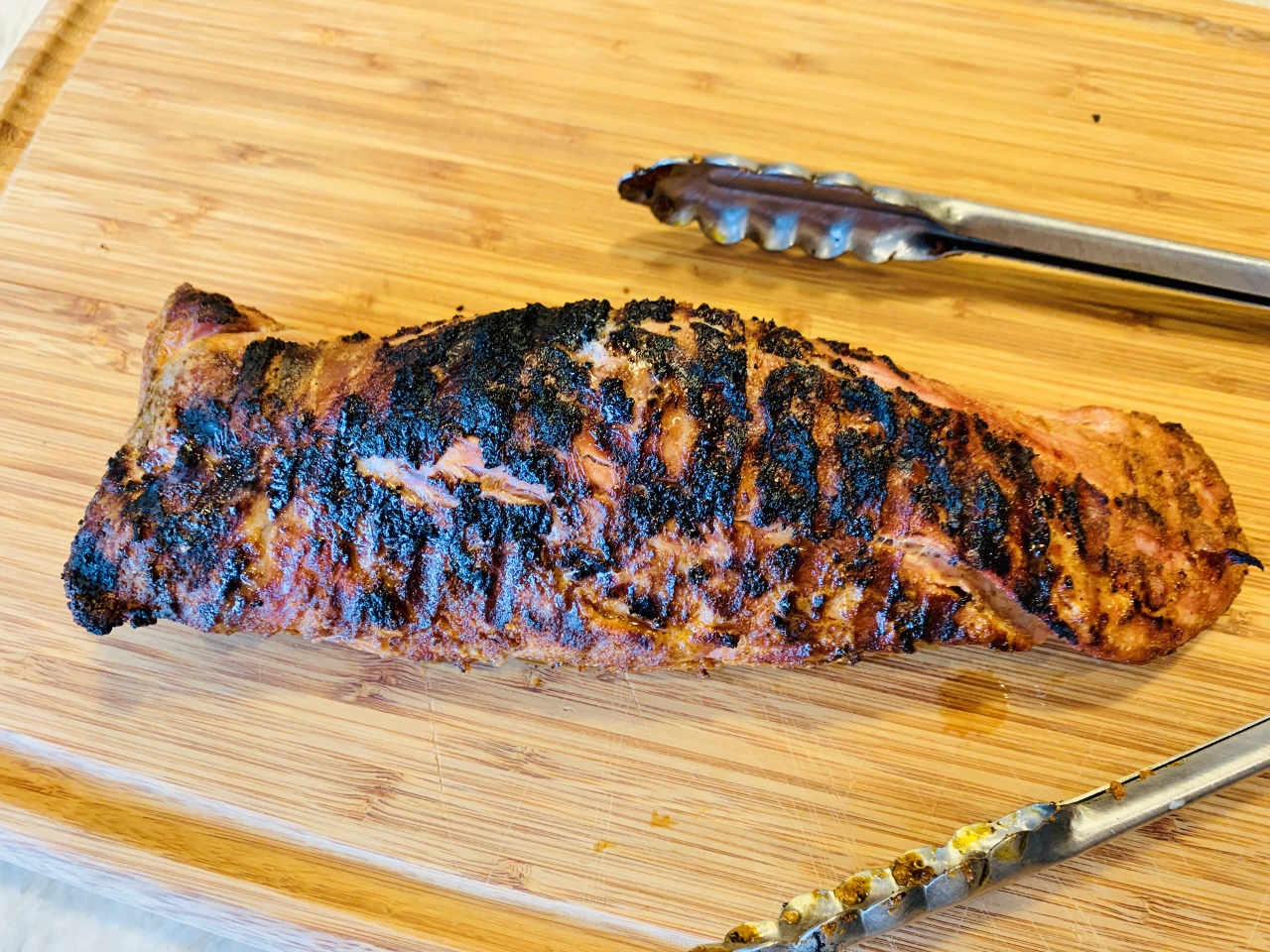 Pork Tenderloin is one of my favorite summertime things to grill.  It’s economical and it cooks up quickly because it’s so lean.  To ensure this meat stays juicy, it’s imperative that you take its temperature and remove it at 138 degrees because it will continue cooking while it rests on your cutting board.  Resting meat guarantees the juices will stay inside the pork, and not pour all over your board.  We definitely don’t want that to happen.