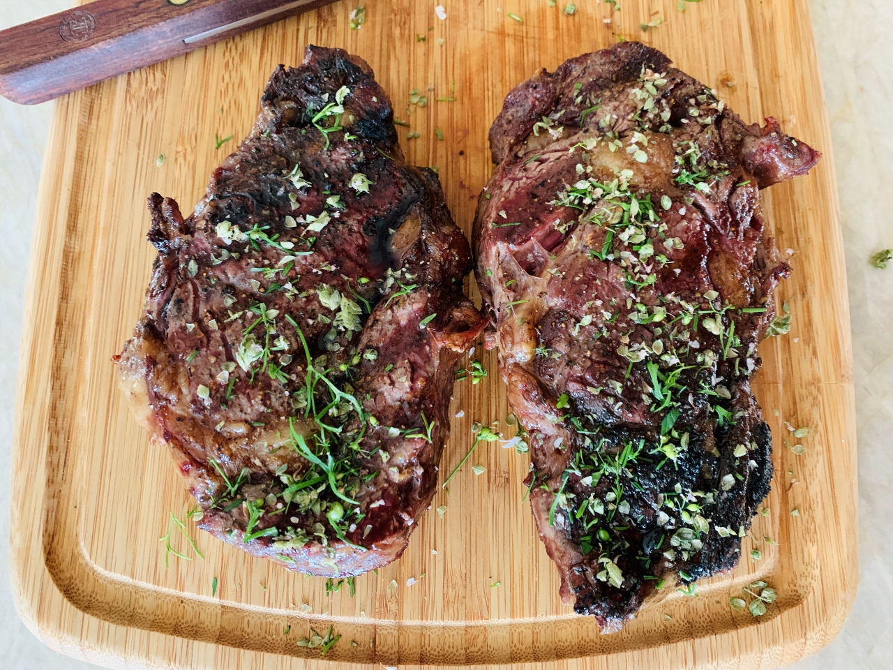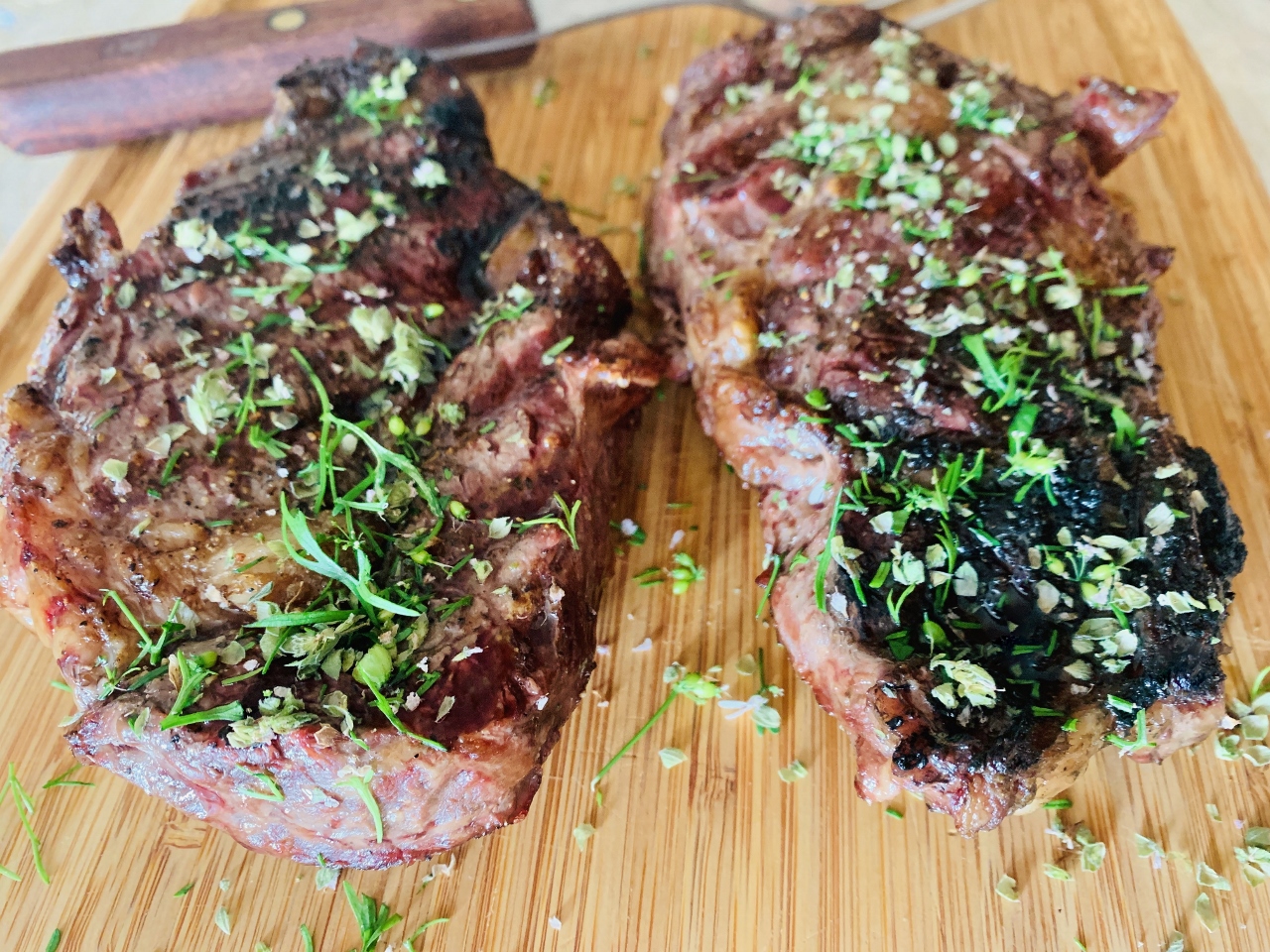 Grilling a ribeye steak at the end of the day is easy enough, but a fresh mince of herbs tossed on top immediately following grilling, adds a new touch of elegance and enhances perfection. Wafting herbal notes will work their way up from your plate and soon enough onto your fork. It’s a great way to serve a steak during the summertime.