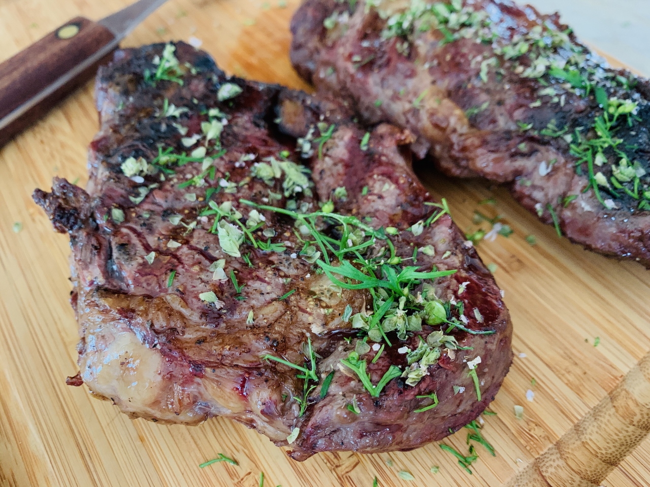 Grilling a ribeye steak at the end of the day is easy enough, but a fresh mince of herbs tossed on top immediately following grilling, adds a new touch of elegance and enhances perfection. Wafting herbal notes will work their way up from your plate and soon enough onto your fork. It’s a great way to serve a steak during the summertime.