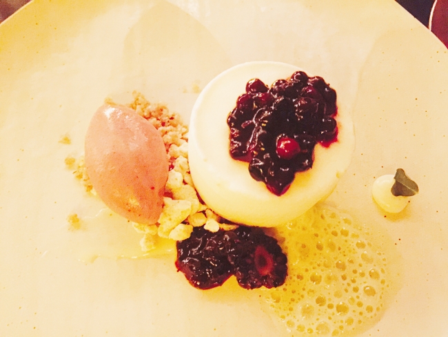 The pre-dessert of Melon Sorbet was a nice palate cleanser, but I thought the Panna Cotta with berry flavors and meringue was a nice ending.
