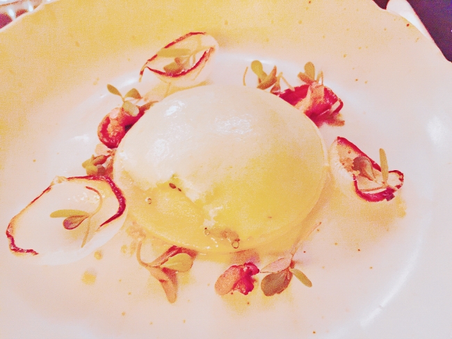 The pasta dish was a smooth and creamy Raviolo with Ricotta cheese, in a light herbaceous foam. I thought it was prepared beautifully, but a tad plain.
