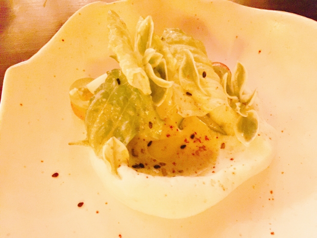 The salad course is not really a salad, but a ring of foam with White Gazpacho in the center and Iceberg arranged around the perimeter. The chilled tomato soup had fantastic flavors and I enjoyed the presentation.