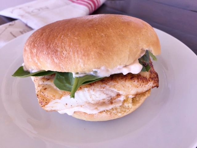 Fish is always nice either sautéed or broiled, and accompanied with rice or vegetables, but piled on a warm brioche or egg bun, it becomes a whole new experience. In this recipe, a quick mix of some pantry ingredients makes a tasty tarter sauce to spread inside the bun and on top of the halibut, and a soft pile of fresh spinach leaves adds a tender crunch. The combination of flavors are outstanding together and let’s face it, much heathier than your traditional fast-food fish sandwich.