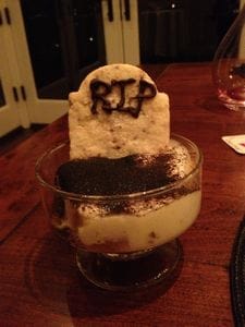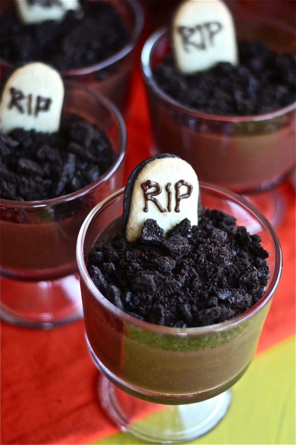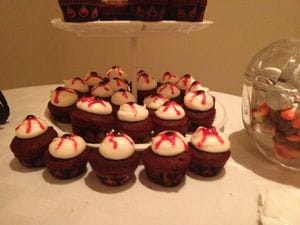 Now that your guests are tremendously full, go for the sweets – Poached Pear Tiramisu and Mini Eye Balls Cupcakes.  Your friends will leave pleasantly spooked.