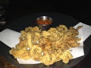 Next, the fun bites included fried oysters, crab or pumpkin toasts and salt & pepper calamari just to name a few. We sampled on the calamari and found the crust nicely crunchy but, lacked salt and pepper flavor. Inspirations were next, which included a Lobster Roll with a charcoal brioche bun. The lobster meat was sweet and tender and the sauce was delicate unlike alot of rolls which are swimming in mayo. I found the bun fascinating, being a pastry chef, and I would love to try and duplicate it. My only complaint would be the size…muy poquito! A little small for $18.