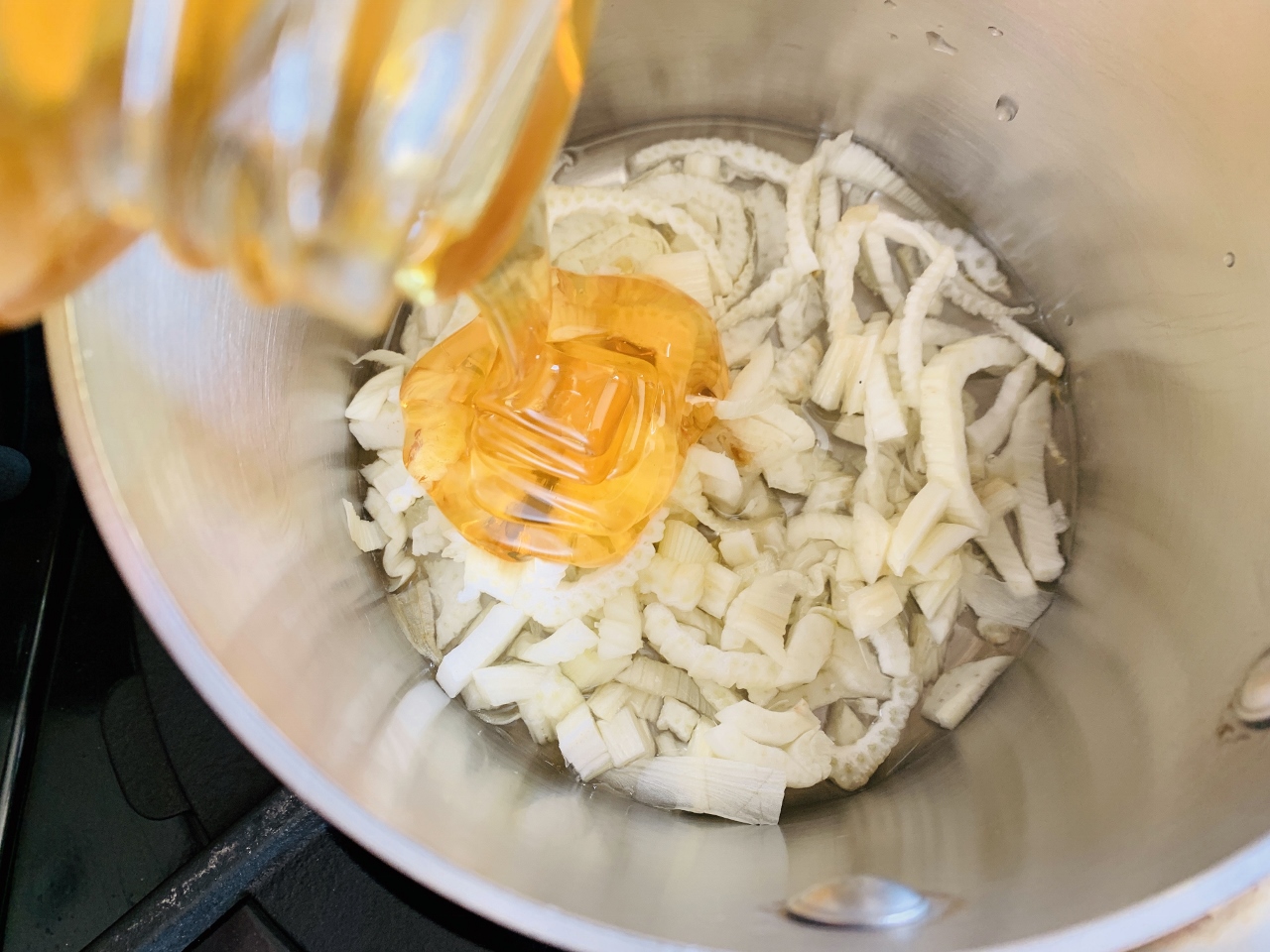 1. In a small saucepan, add fennel, 1/2 cup water and honey.  Place over medium heat and cook for 5 minutes.