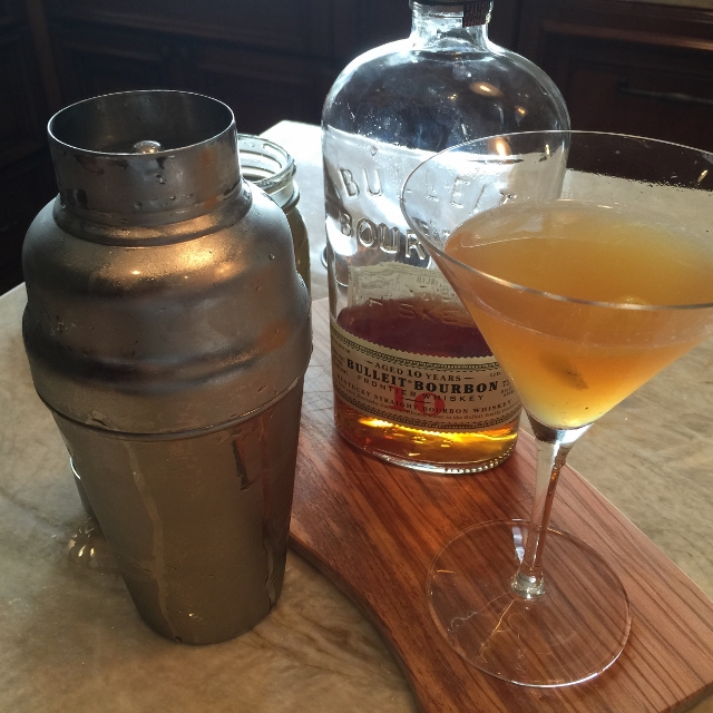 7. Pour the Infused Bourbon Sour into your chilled glass and….