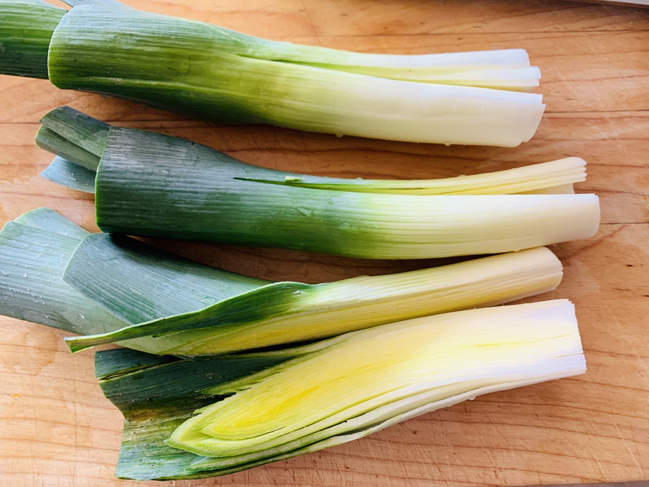 Washing leeks properly to remove the sand and soil is a must, so if sliced in half before rinsing, they clean easily. Fresh leeks are sweeter than onions, and balance out the earthiness of lentils. The combination of the two compliment each other and create one pot of delicious tasting soup.